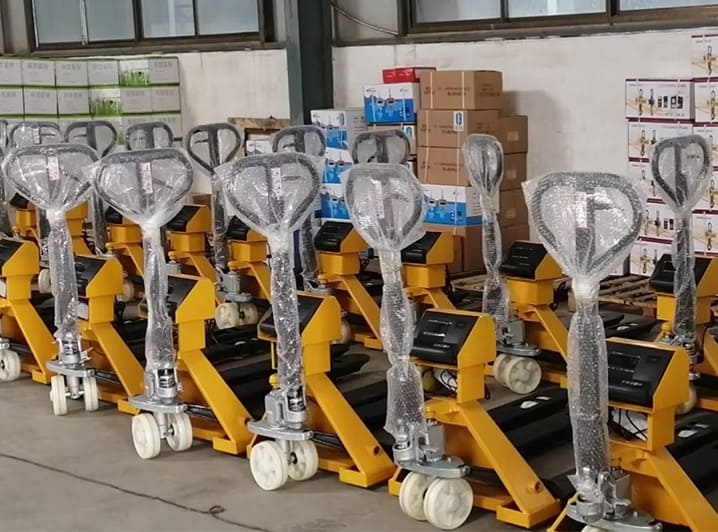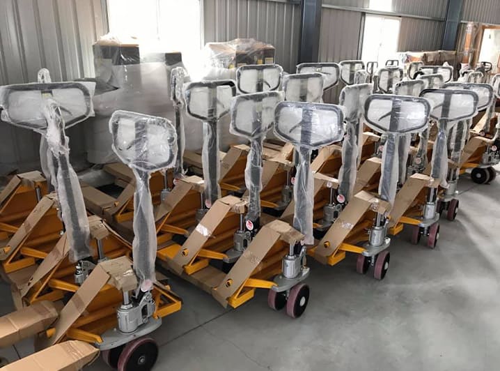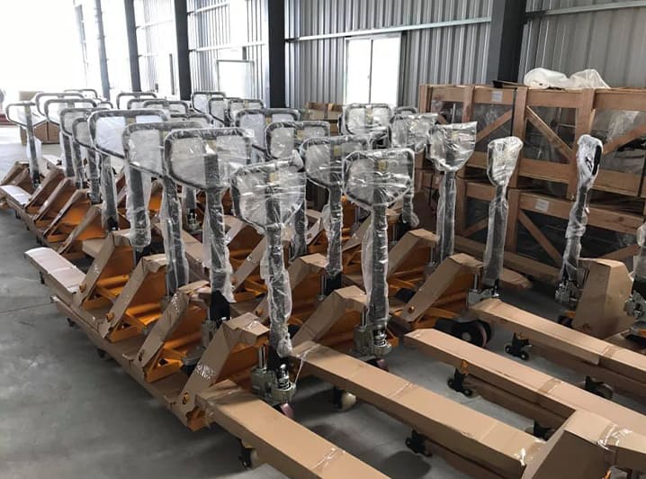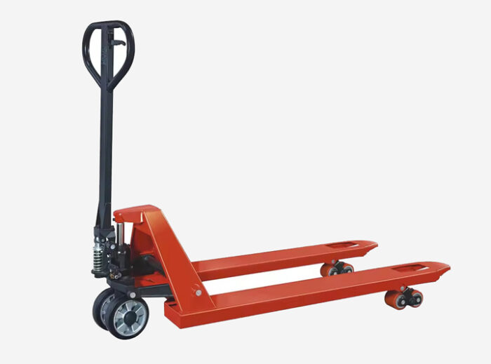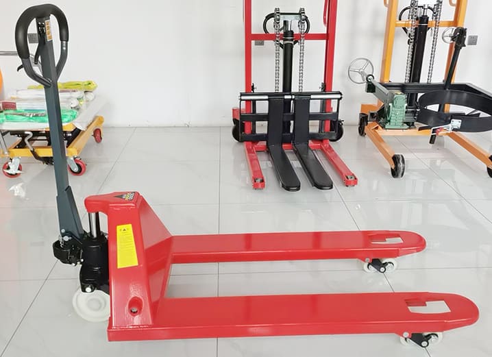 - Hydraulic Lift Mechanism: A hydraulic pump lever is used to lift the forks and elevate the pallet load.